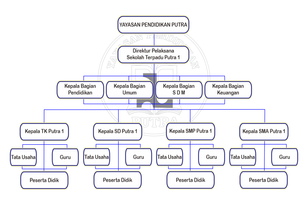 Struktur Organisasi Sekolah Terpadu Putra dipimpin oleh seorang Direktur Pelaksana dan dibantu oleh empat Kepala Bagian beserta staf yang menaungi empat unit sekolah yaitu TK, SD, SMP, dan SMA.