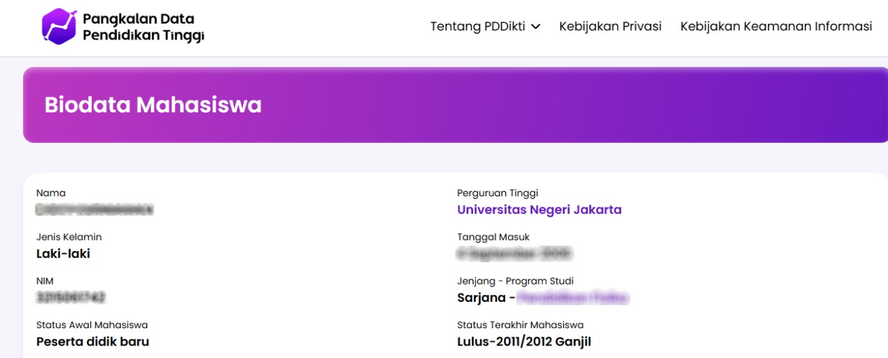 Berkas yang dikirimkan minimal menyertakan Surat Lamaran, Curriculum Vitae atau Daftar Riwayat Hidup, KTP, Ijazah, Transkrip Nilai, Surat keterangan pernah bekerja (jika ada), serta tangkapan layar dari situs https://pddikti.kemdiktisaintek.go.id/ yang menampilkan data Anda seperti contoh berikut.